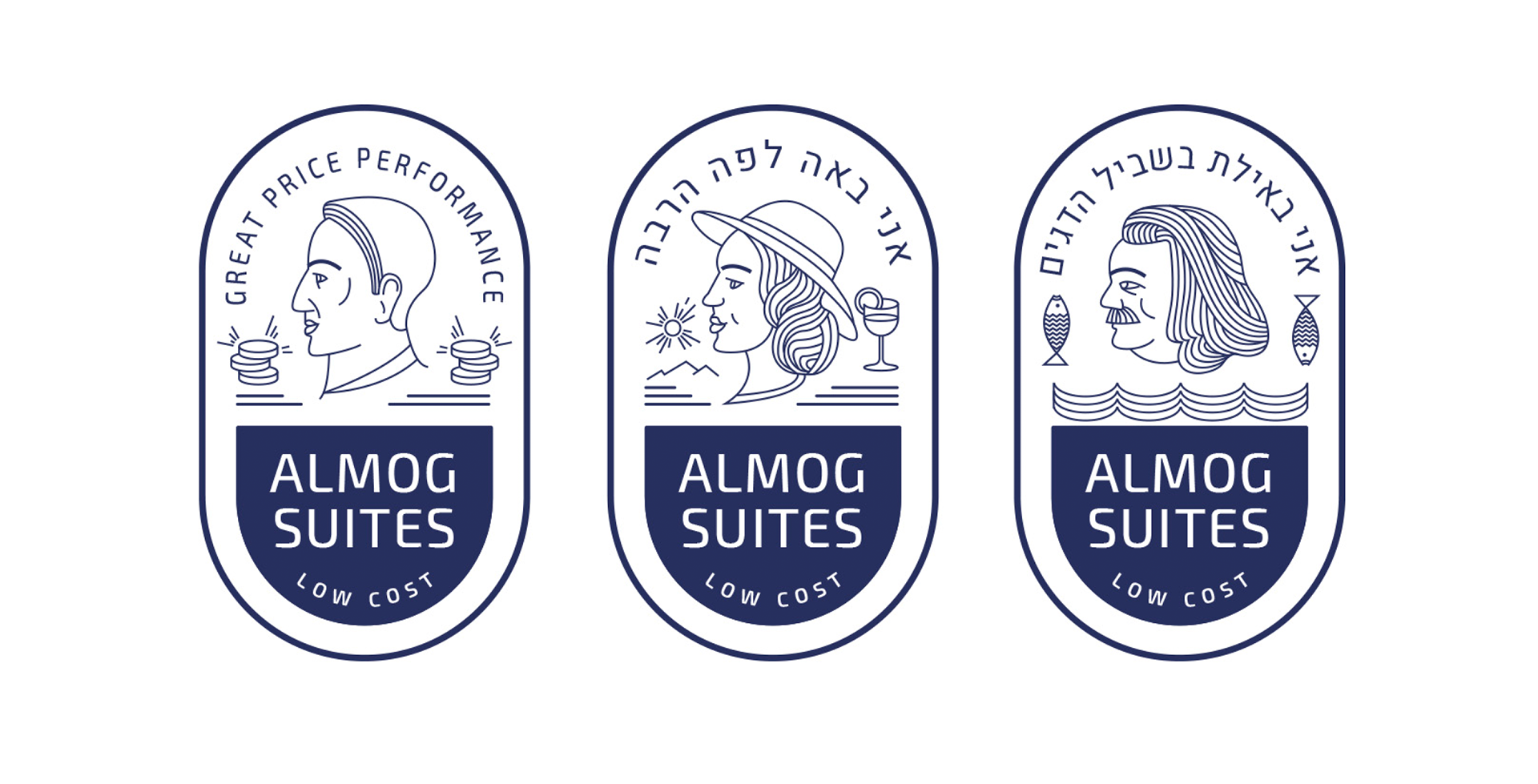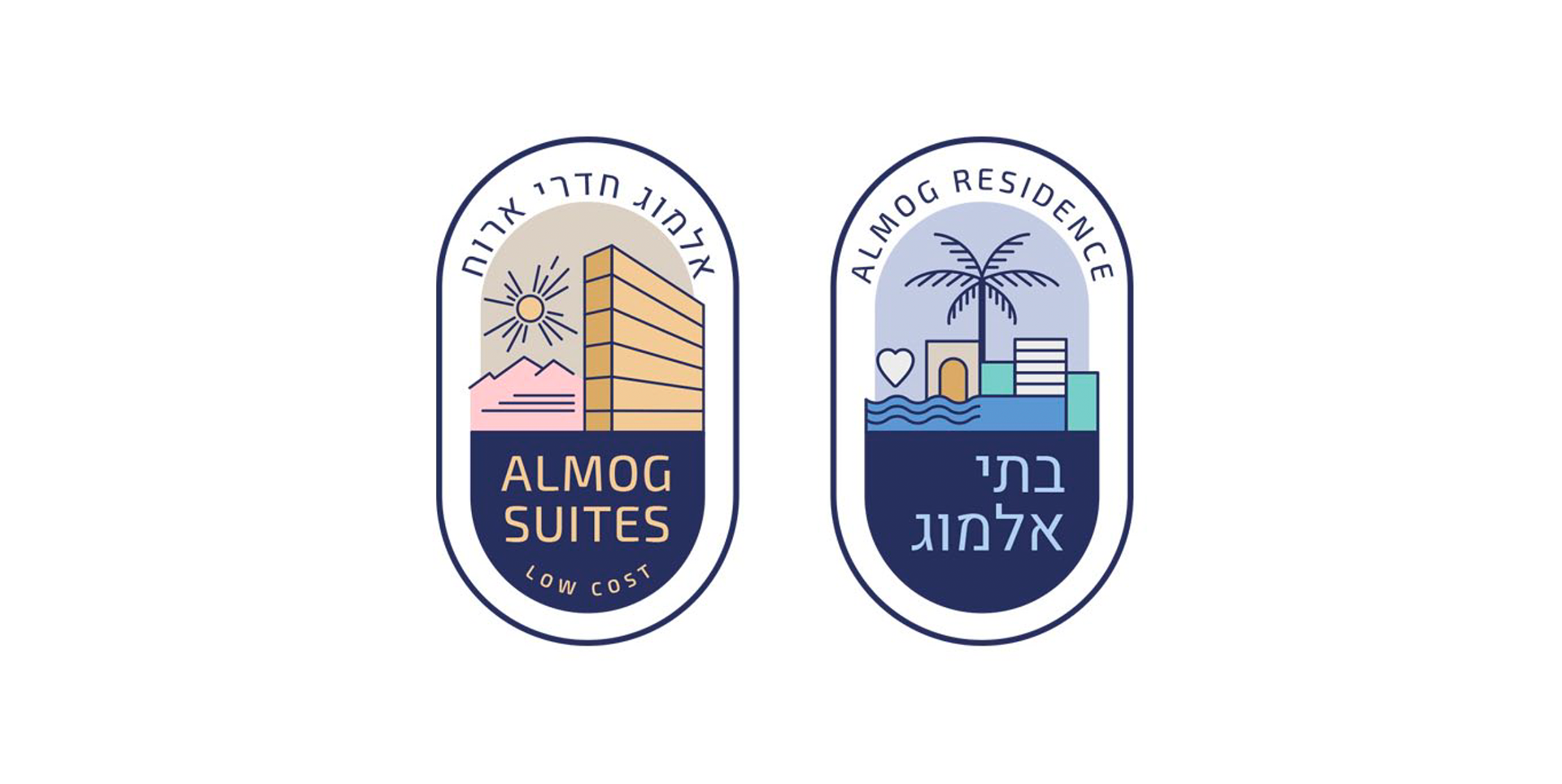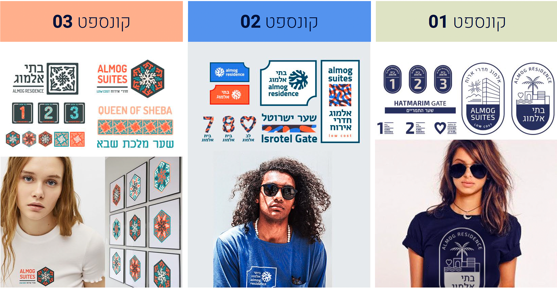 Разработка трех концепций фирменного стиля и элементов оформления для гостиничного комплекса Almog (Эйлат, Израиль)