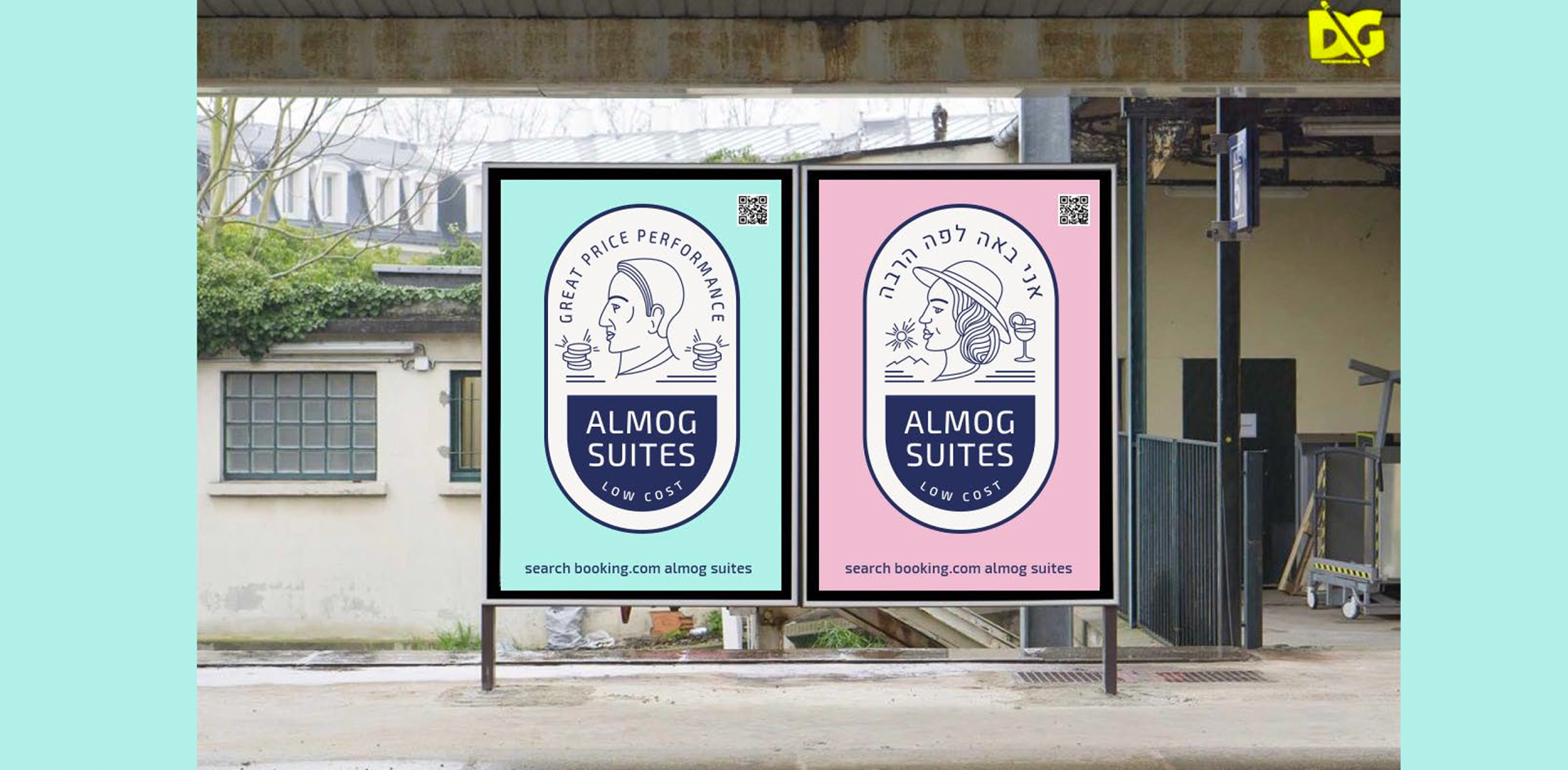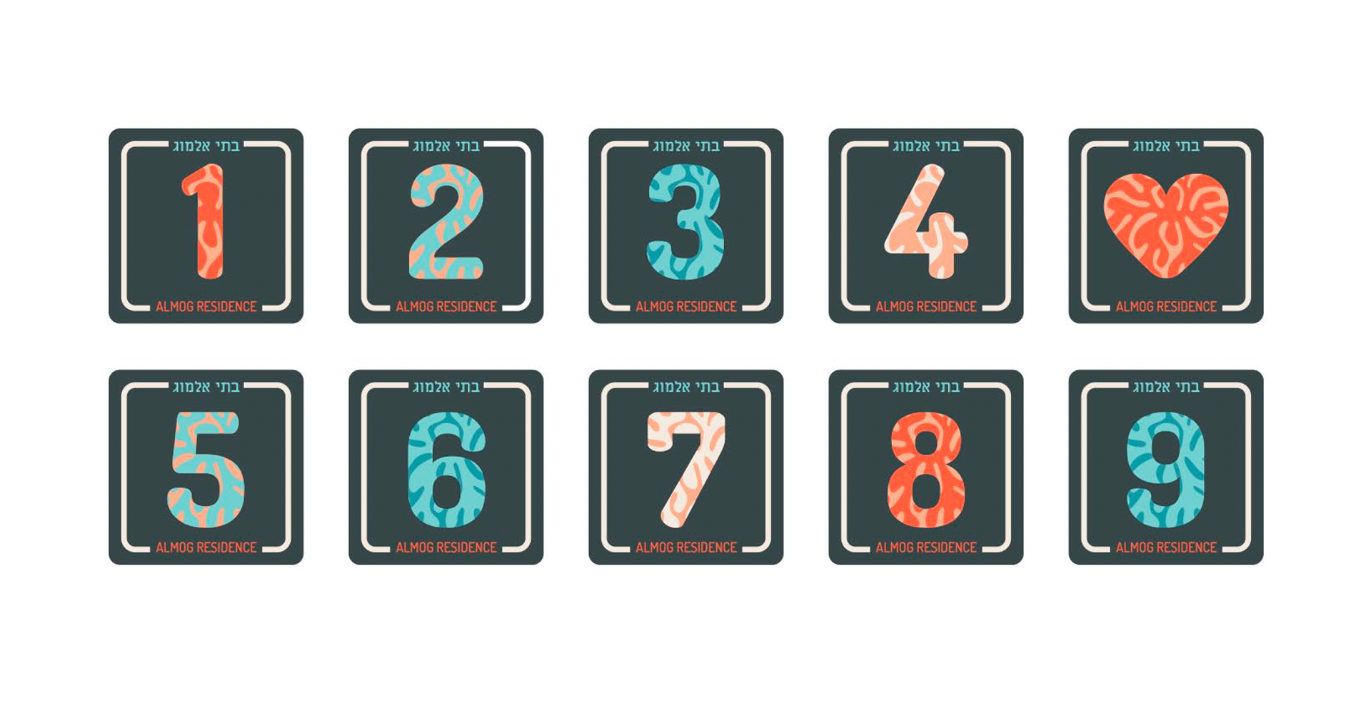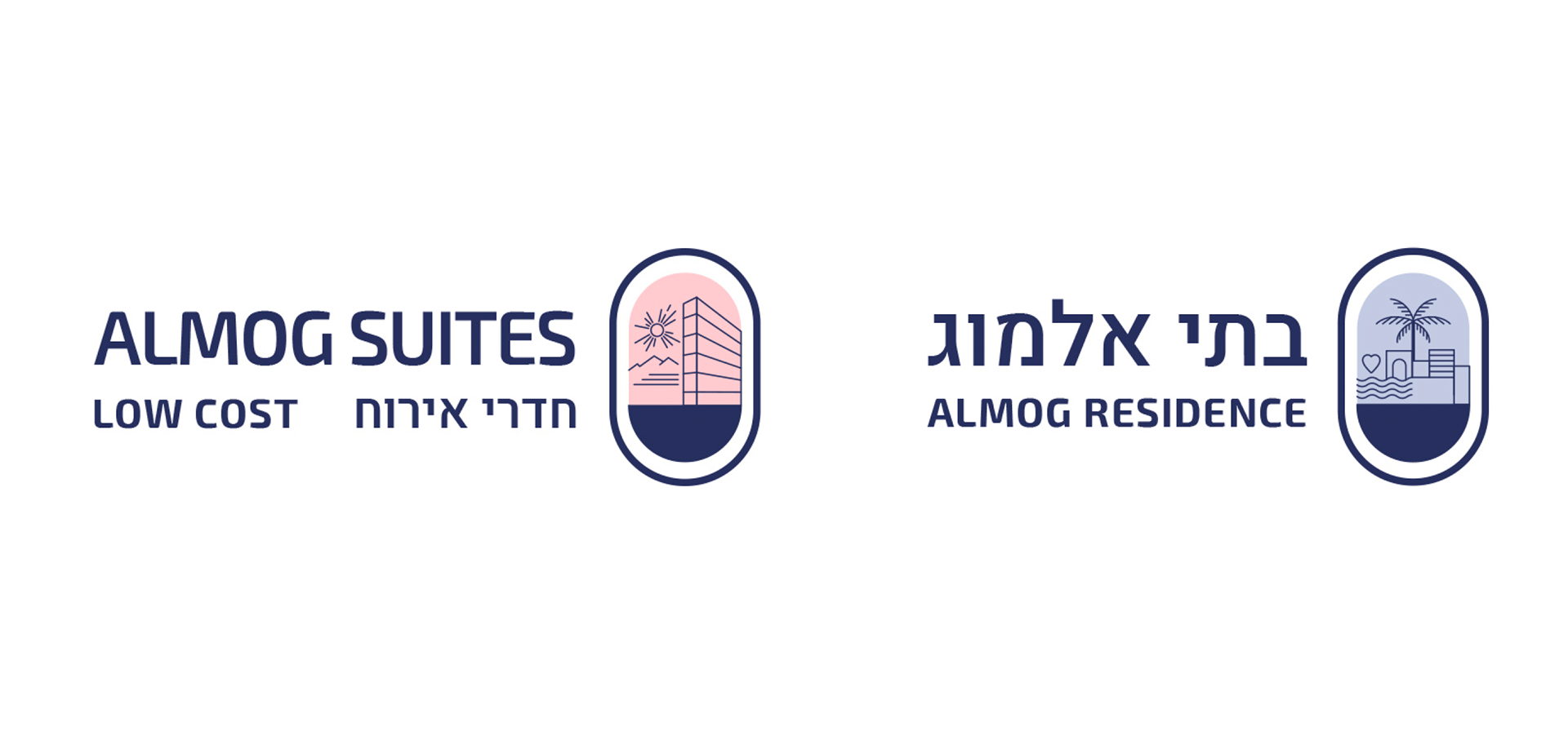 Разработка трех концепций фирменного стиля и элементов оформления для гостиничного комплекса Almog (Эйлат, Израиль)